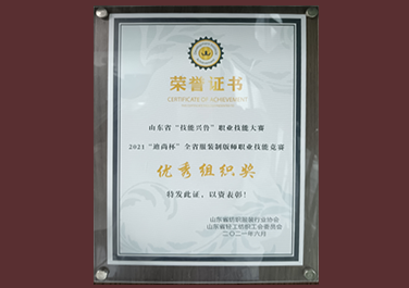 “技能兴鲁”职业大赛2021年“迪尚杯”全省服装制版师职业技能竞赛的优秀组织奖